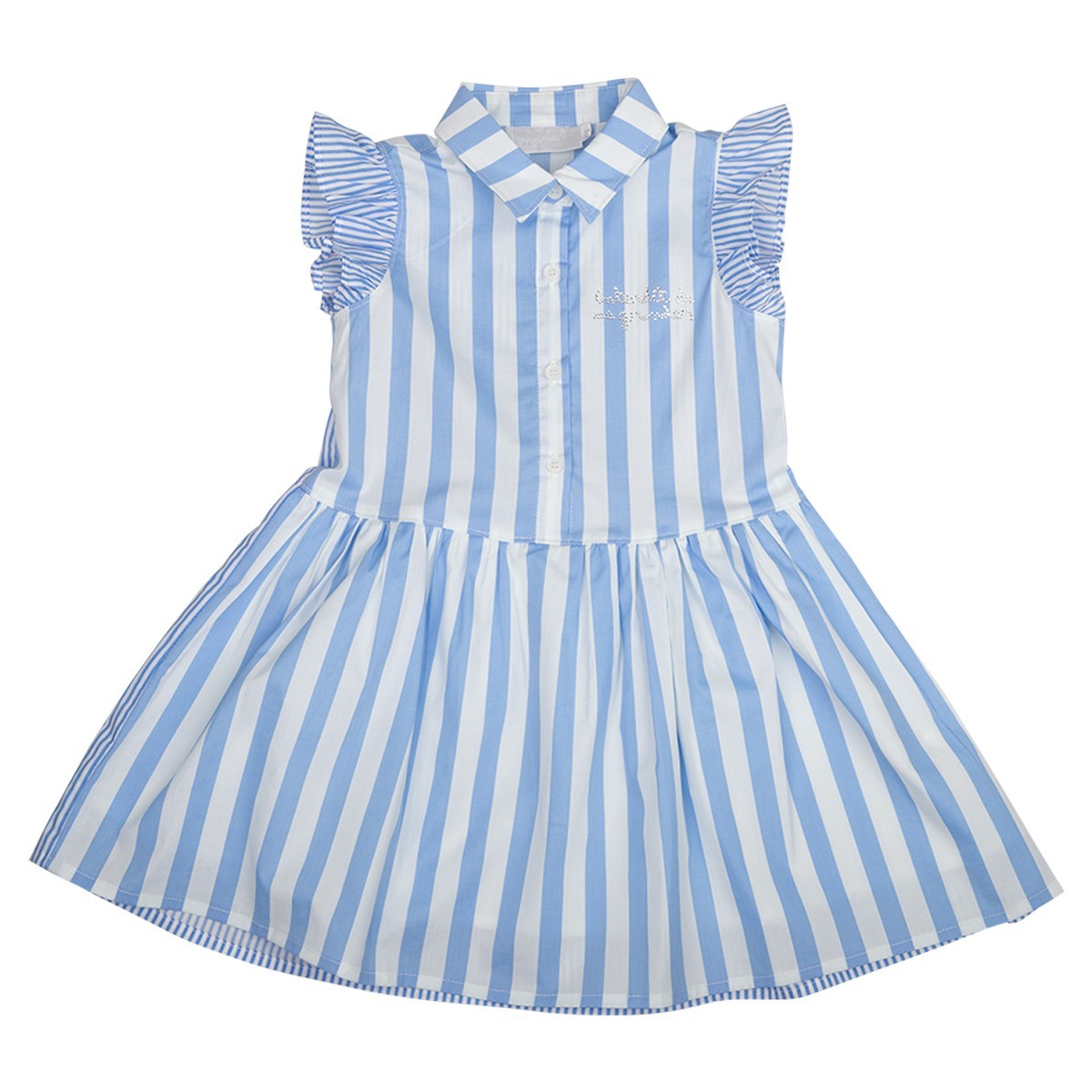Oplev den charmerende "Duna"-kjole fra mærket Interdit de me gronder . Denne kjole skiller sig ud med sit blå og hvide lodrette stribede mønster, der giver et friskt og tidløst touch. Den har en klassisk skjortekrave og fine flæser på skuldrene for et feminint touch. En diskret sølvbroderet besked på toppen markerer mærkets identitet. Med sit behagelige, svajende snit er denne kjole perfekt til et elegant og let sommerlook.